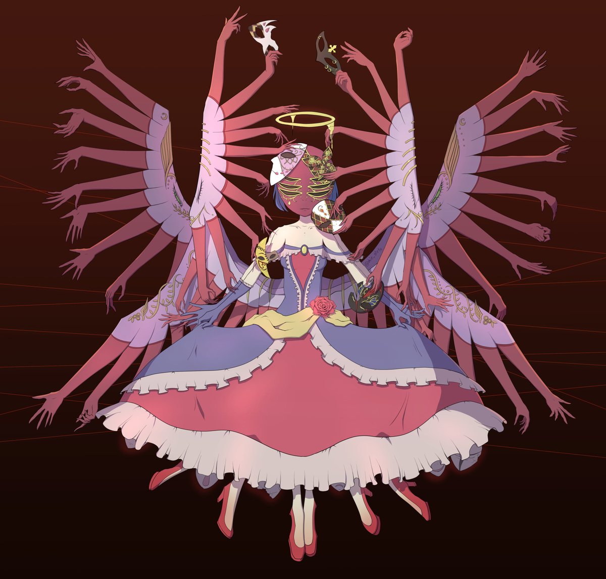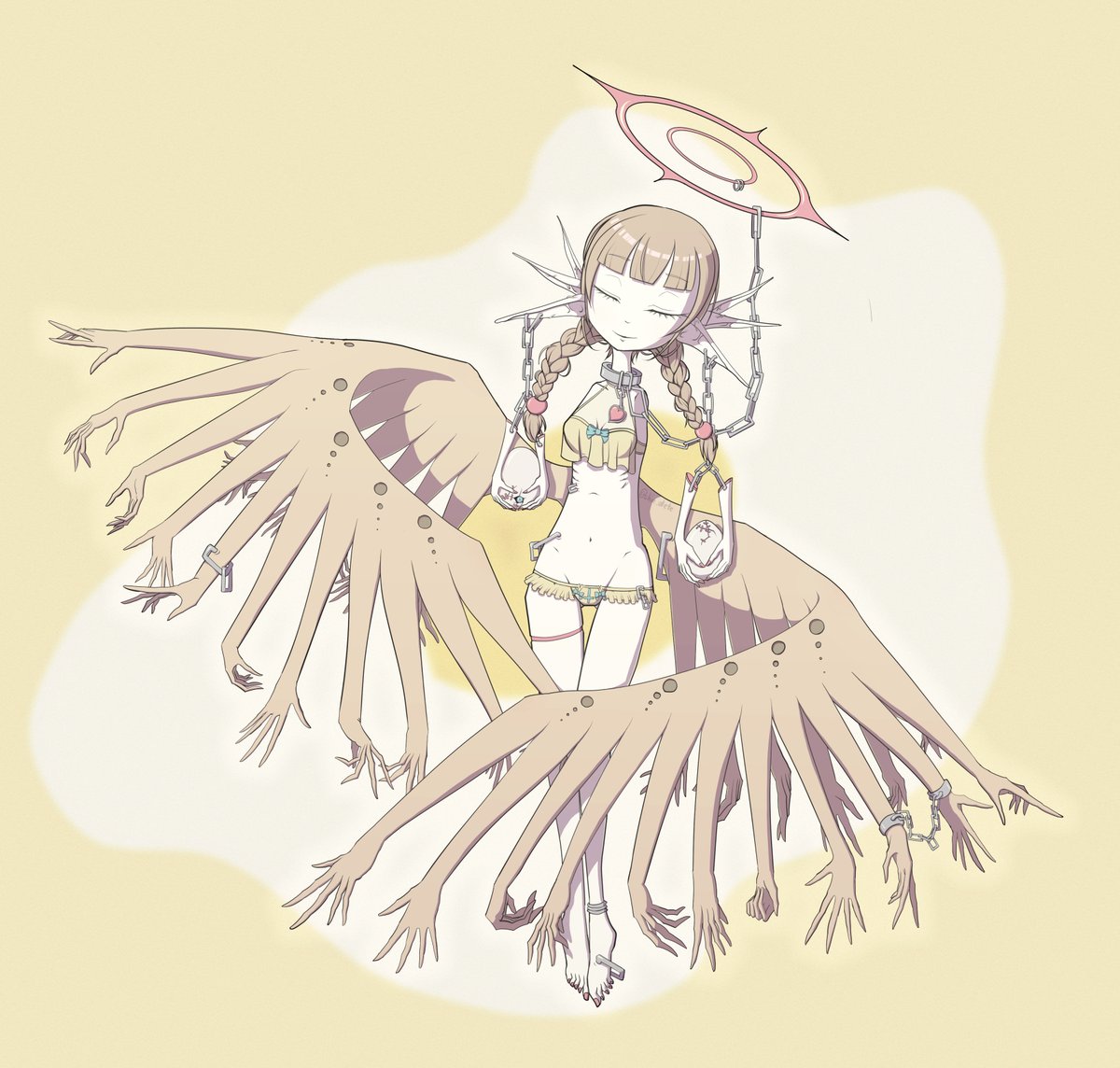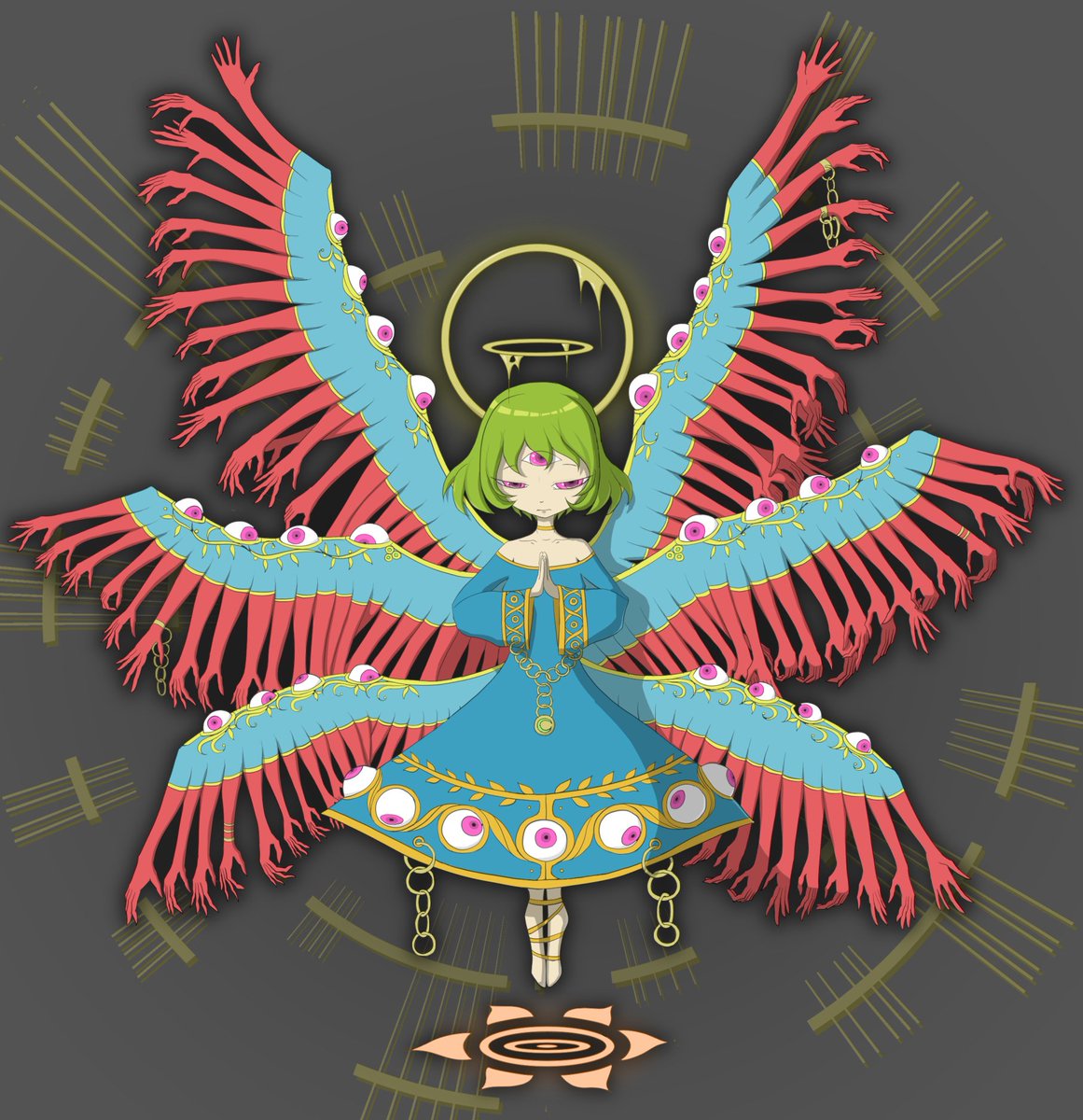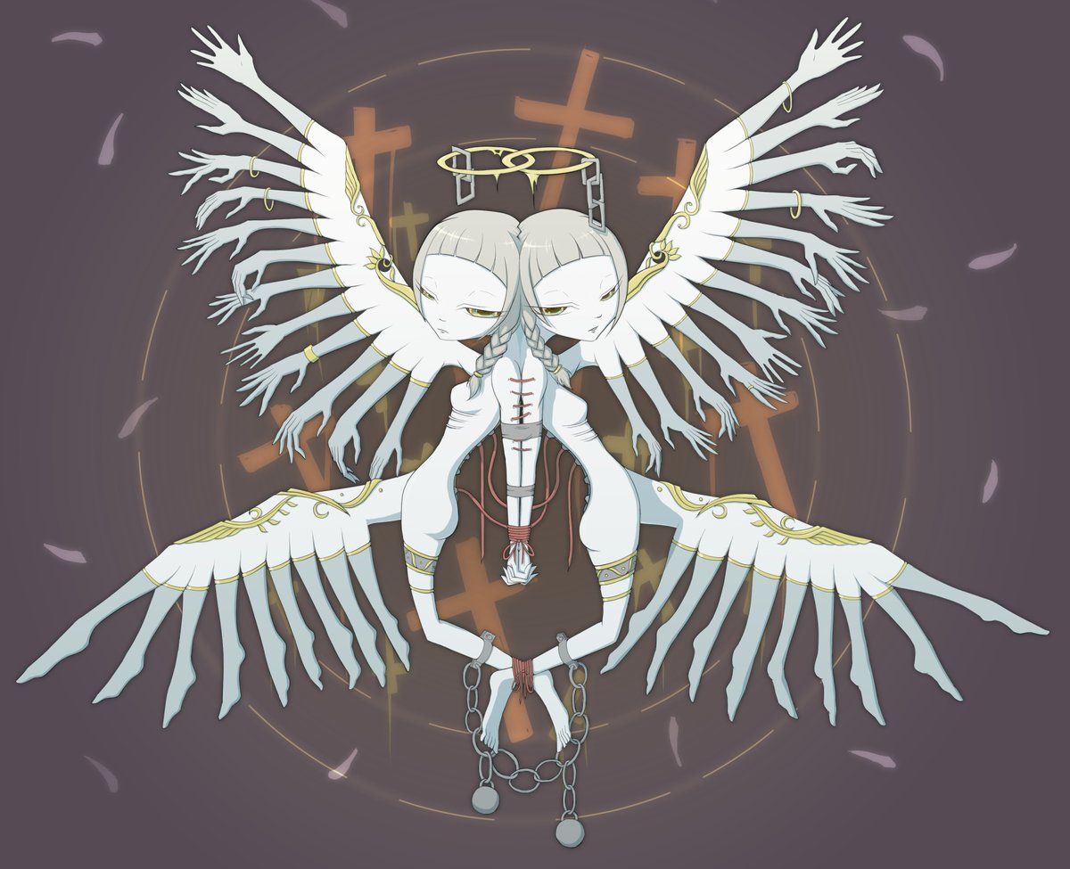 #6月になったのでフォロワーさんに自己紹介しようぜ 人外、モンスター系の女の子と、メンヘラな女の子の絵をよく描いてる絵描きです。#多腕の天使様 シリーズとして禍々しくも神々しい天使の絵を描いてます。 グッズも売ってます、詳細はプロフ欄から!