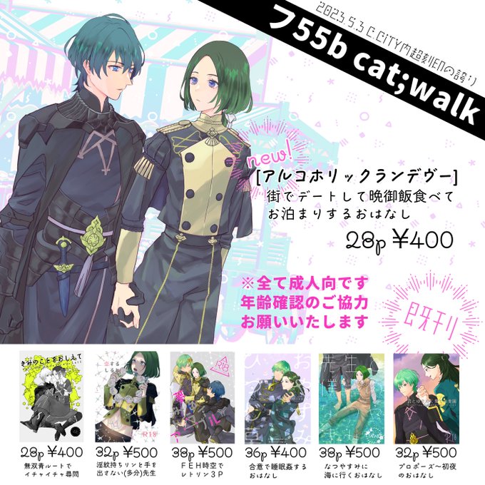 9 14 5/3超こくほこお品書きです。 サンプルはpixivでご確認ください。あんじょうよろしゅうです! pixiv.net/artworks/10763… 23/04/29 20:51