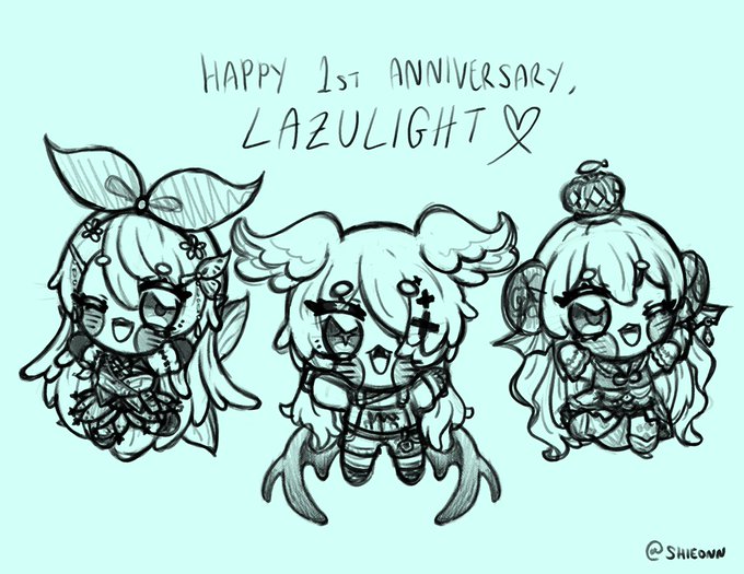 y'all insane, happy 1 year old!!! 🌤️🐠🧚🎉💖 #Lazu1ightAnniversary #pendorART #PomuPaint #Finanart