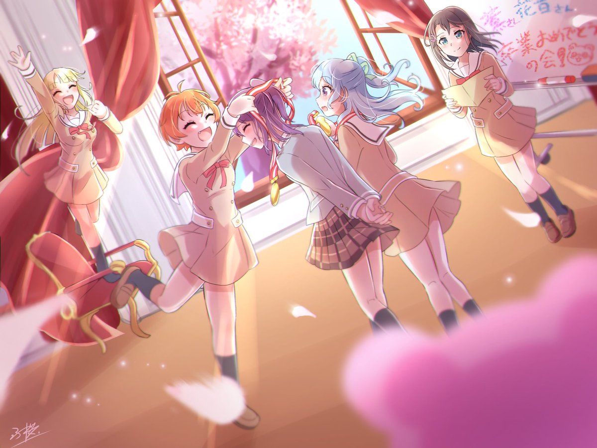 そんけーする先輩たちへ、愛を込めて。 もともとイラコン用に描いていたものではあるけど、なんとか学年上がる前に間に合ったぞ…‼︎ 素敵な大学生に、そして素敵な高校3年生になってね🌸 #bandoriart