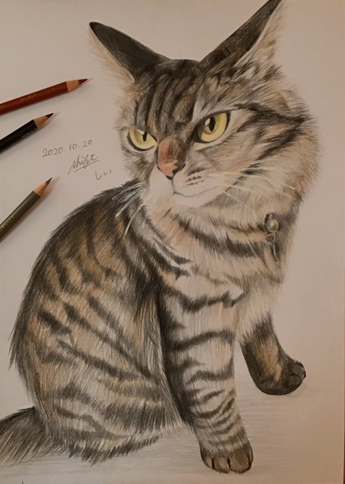 初めて描いたけどけっこう楽しいねこれ☺️ #色鉛筆画