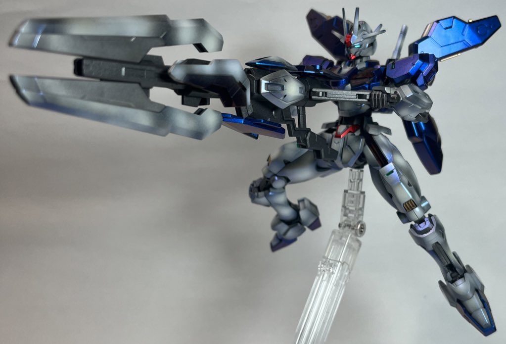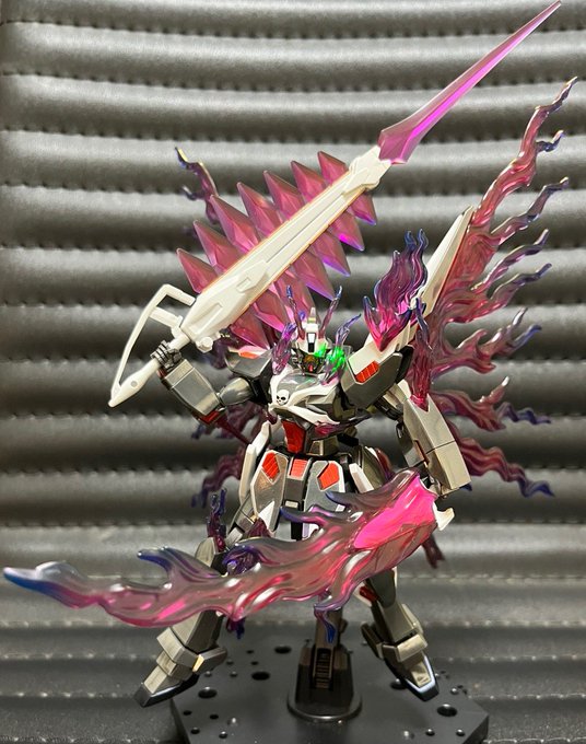 HGファントムガンダム完成! ゴーストガンダム風メッキ塗装+木星モノアイLED発光仕様。 なんか遊んでたら上手くいったのでファントムライトもグラデ風塗装しました。 #ガンプラ #ガンプラの画像貼るとRTされると聞いて #ガンプラ好きな人と繋がりたい