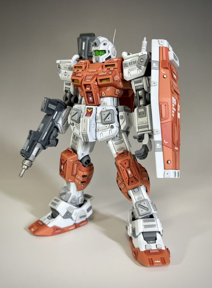 HGUCパワードジム、完成しました。 「あのバックパックはジムには重すぎるよなあ」ってキースに言われないようにちょっとヘビーに作ってみました💪 #パワードジム #ガンプラ