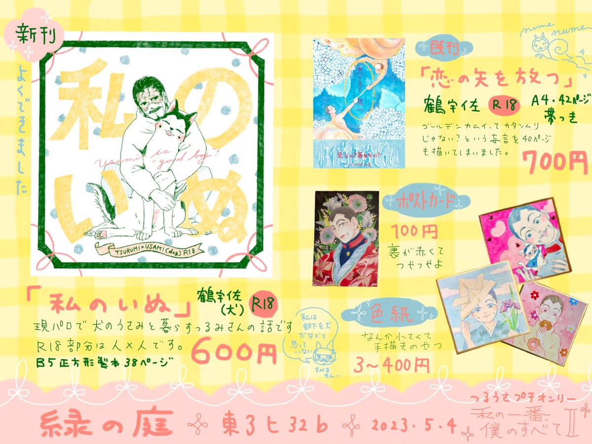 5/4超黄金暗号2023のお品書きです🌸うかれたぴんくのポスターが目印です🌷新刊あります🐕よろしくお願いいたします✨ pixivはこちら→pixiv.net/artworks/10753…