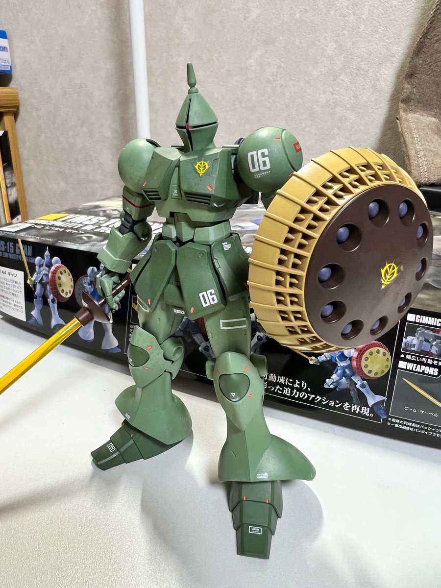 ギャン量産型完成。 仮組みのジャイアントガトリング持たせたら思いの外しっくりw ガンマカエアブラシ塗装にウェザリング、ドライブラシと楽しかった😆 #ガンプラ #ガンプラ好きな人と繋がりたい #ガンプラの画像を貼るとRTされると聞いて #ガンプラは自由だ