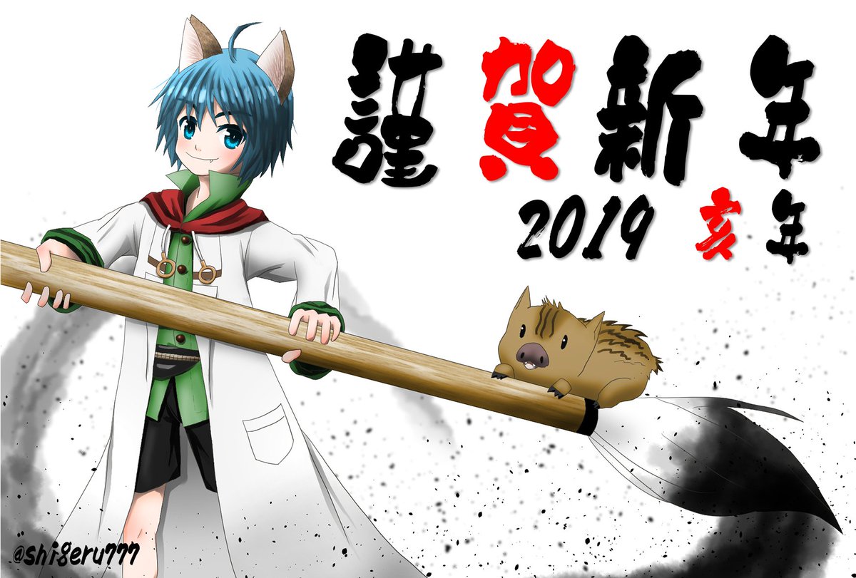 13 41 【大遅刻】あけましておめでとうございます。今年も僕とお酒とレオンをよろしくお願いします🐗🍺 #2019年描初め 19/01/06 14:32