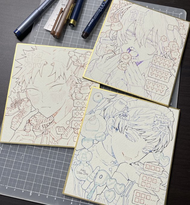 53 702 【お知らせ】スモールエス74号でメイキング担当させていただいてます!大好きな画材達で描かせていただきました。 色紙プレゼントと展示もよろしくお願いします! #スモールエス 23/07/21 11:28