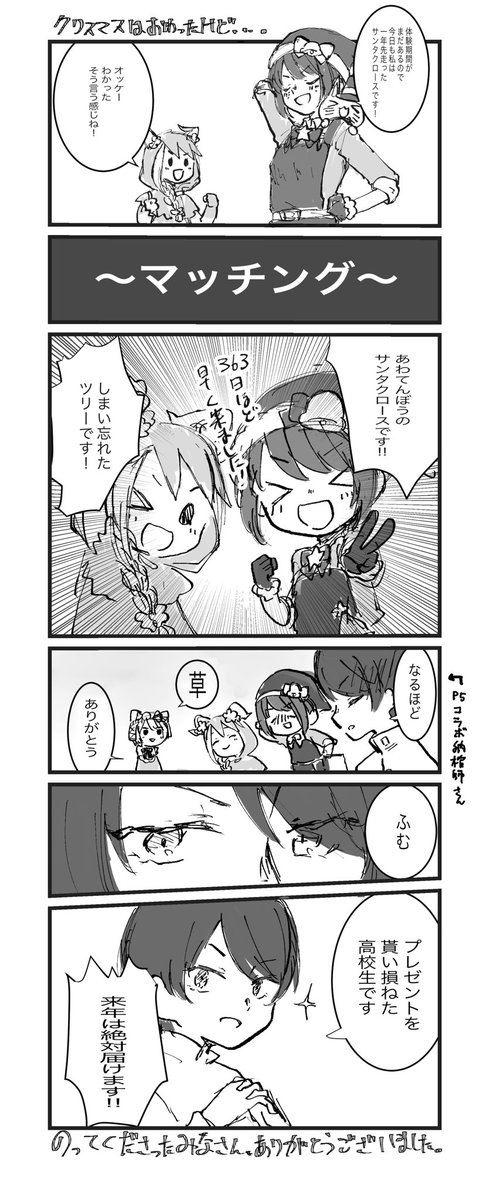 昨晩のはしゃぎ倒した話。 他にも泥棒さんや医師さんのサンタ衣装で来てくださる方も多かったです。楽しい。 #第五人格実録 #第五人格イラスト