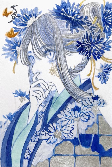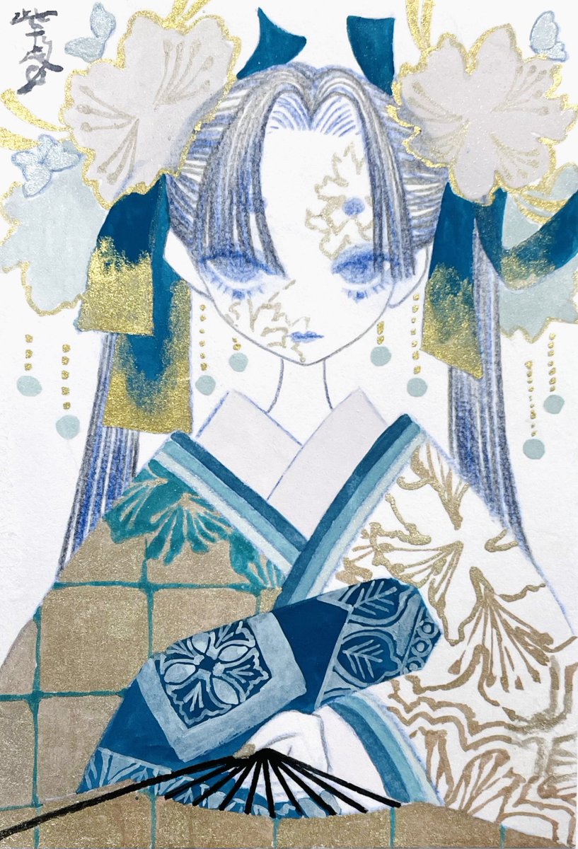 #刺さる人に届け一次創作祭り 和装少女のアナログイラスト