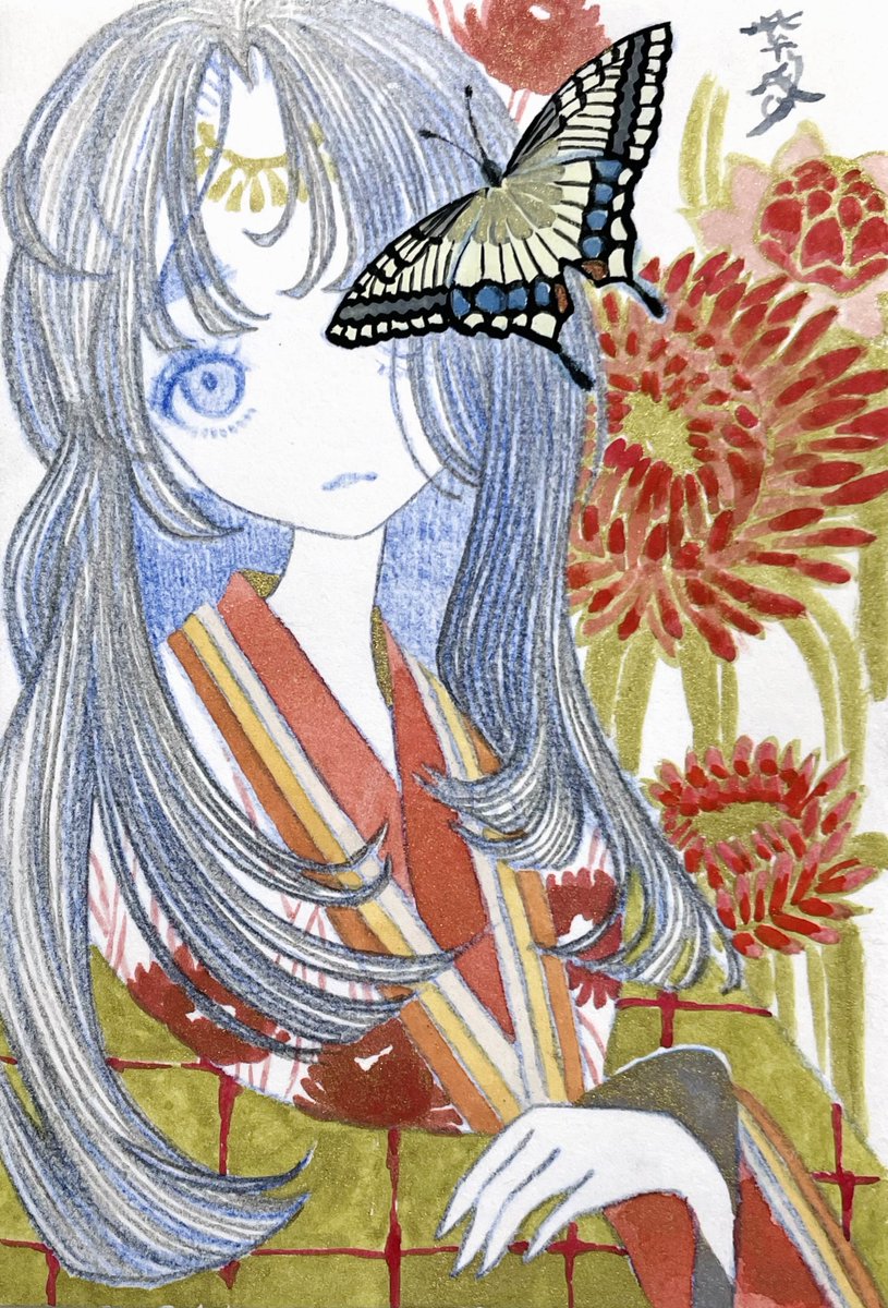 181 1435 #刺さる人に届け一次創作祭り 和装少女のアナログイラスト 25/02/09 20:22