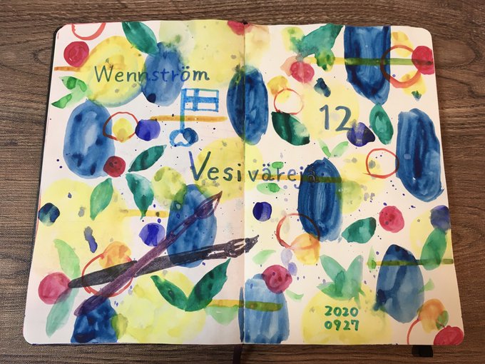 今日の絵日記📔 今日はYouTubeに不思議な絵の制作過程動画をアップして、次の動画の撮影もしました!YouTube楽しくなってきたー♪ #artjournal #Wennström #watercolor #Finland #水彩 #絵日記