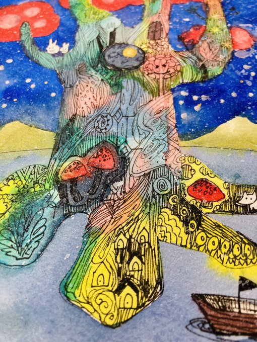 制作過程の動画つくったよ! インスピレーションで描いたアート🎨 ぜひ見てね♪ ↓YouTube youtu.be/cCzOcy1zNm8 #絵描きさんと繫がりたい #絵描き #絵 #YouTube #水彩 #透明水彩