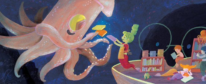 Happy #indiebookstoreday 🥰 Even deepsea has a local bookstore😉 #kidlitart #illustration @EastWestLit