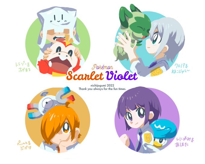 それぞれの相棒たち…? みんなニックネームに個性あっていいな。私もポケモンの名前に『まる』付けがちなのでトラゾーさんに親近感😊 #ぺんちゃんの絵本 #クロノアの美術館 #しにがみあーと #トラソの展示会