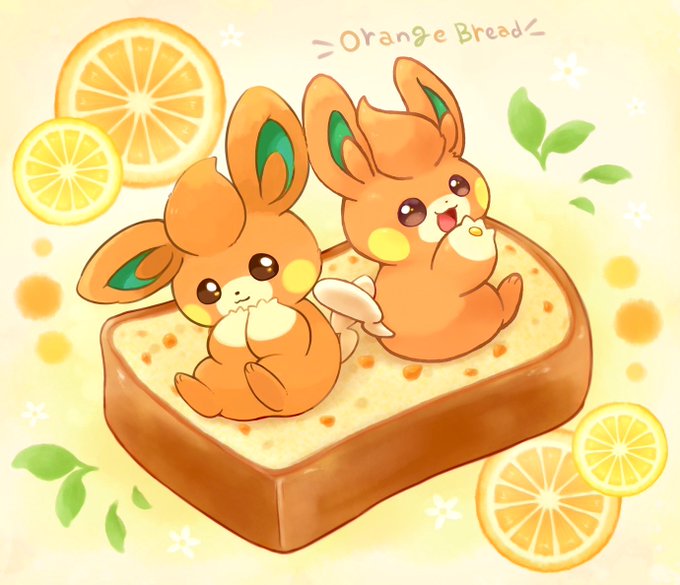 🍊パモ味わい合作第2弾🍊 かなンボさん(@raityu)とまた合作しました🍴 オレンジ味のパモさんたちを添えた味わい深いオレンジブレッドです🐭🍞 椎み:ラフ、左パモ線画、右パモ塗り、背景 かなンボ:右パモ線画、左パモ塗り