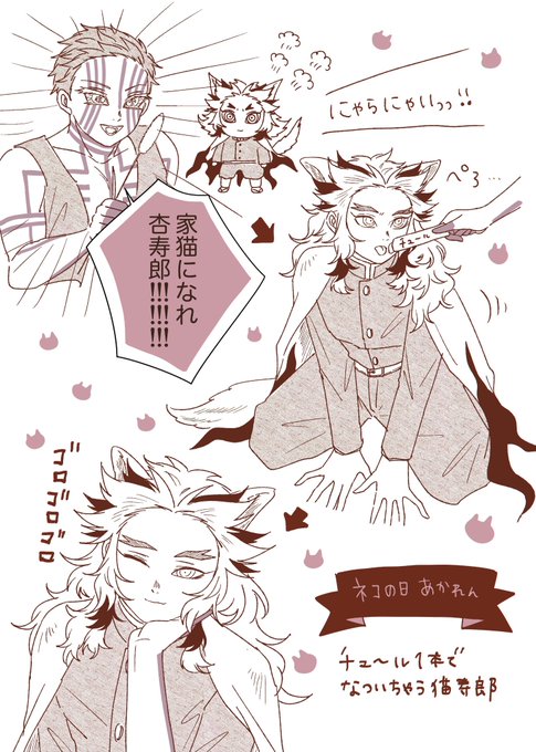 大遅刻の🐱の日猗窩煉 ご都合のやつでなんやかんやネコチャワになった🔥さん。🐱ジュロは最初はつんつんしてるけど餌付けしたら、きっとすぐなつく☺️💚 ポイはおまけでもっとなついた図付き poipiku.com/5534242/836804…