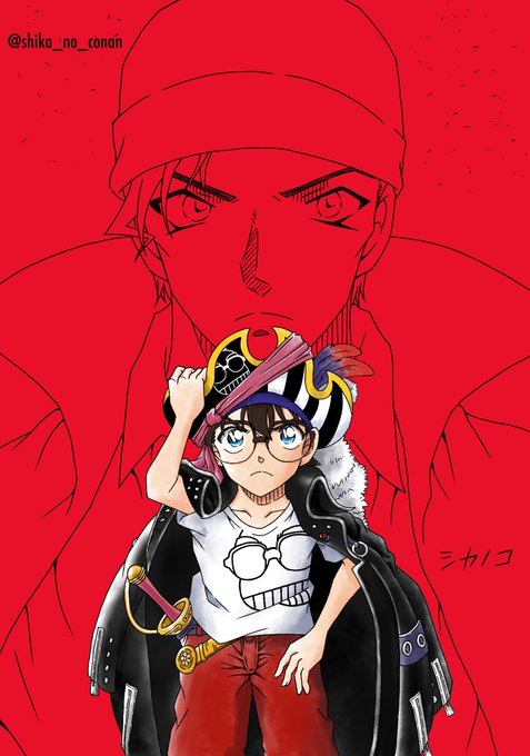 先週の対談からの流れで今週のジャンプの表紙を見たら、直感的に描きたくなりました笑笑 ルフィのTシャツ,帽子はドクロマークでしたが、青山先生のアイコン(?)を描いてみました笑 #真実はいつもひとつなぎの大秘宝 #ONEPIECE #OP_FILMRED #今週のワンピ #名探偵コナン #conan #シャンクス #赤井秀一
