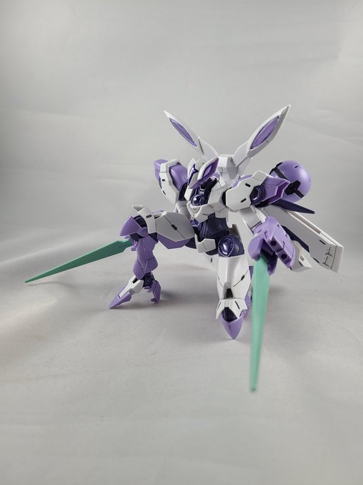 #ガンプラ #ガンプラの画像貼るとRTされると聞いて #水星の魔女 ベギルベウ完成しました パチ組、一部シールでもこれだけ完成されてるのは流石最新キットですね 片膝立ちもここまで綺麗に出来る程可動します ちなみにカタールの刃にだけは軽くホワイトパール吹いてたりします