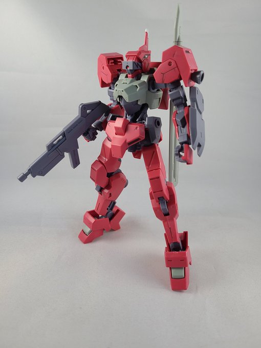 #ガンプラ #ガンプラの画像貼るとRTされると聞いて #ガンプラ好きとつながりたい かなり間空きましたがフラウロスなんとか完成しました······ 肩とか頭とかガンダムフレームの中では結構特徴的ですね 砲身各部のマゼンタは赤に少しずつ白混ぜて程好く調整しました 次はグシオン進めます