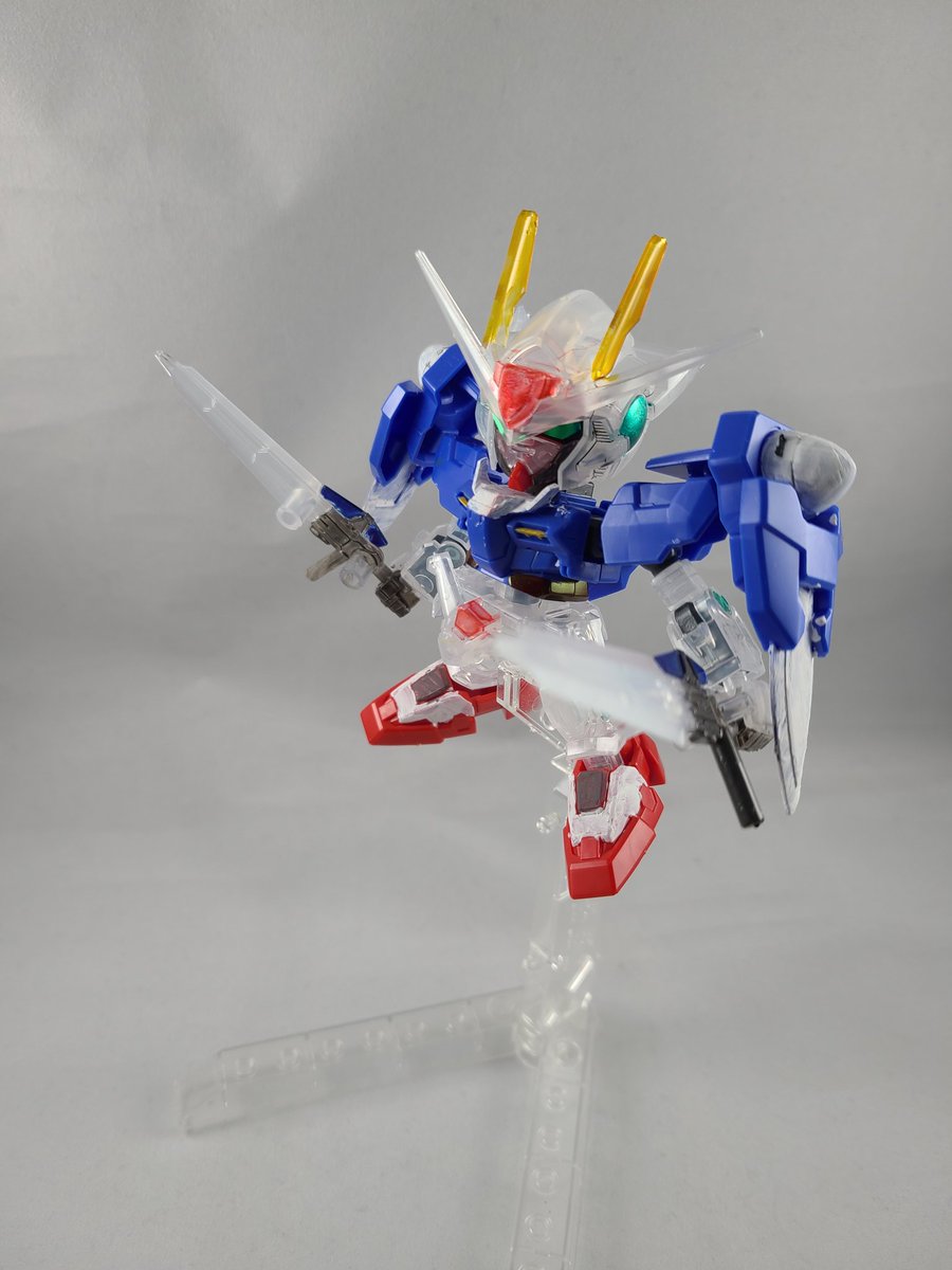 #ガンプラ #ガンプラの画像貼るとRTされると聞いて #ガンプラ好きな人たちと繋がりたい フラウロス部分塗装まだですが息抜きに一番くじのSDダブルオー雑になりましたが仕上げてみました 白部分クリアなのでクリアレッドとクリアイエロー使いました あとGNソードⅡはちょっと強引に連結も出来ます