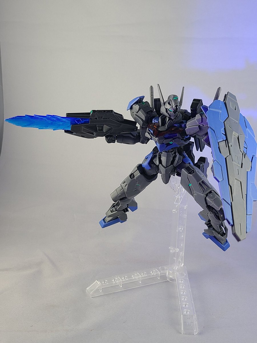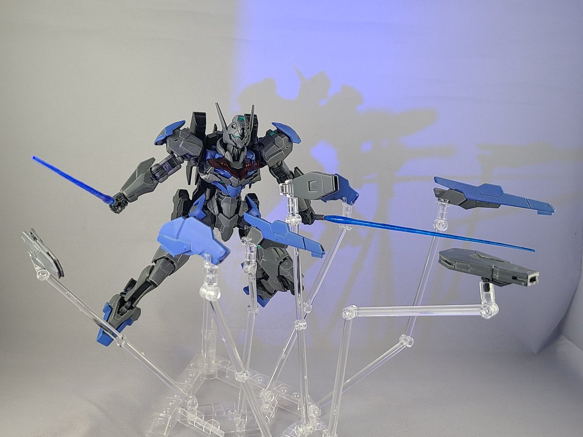 #ガンプラ #ガンプラの画像を貼るとRTされると聞いて #ガンプラ好きと繋がりたい #水星の魔女 撮影直前にトラブルありましたがガンダムファラクト完成です 平手付くので狙撃も含め色んなポーズに使えます クリアパーツやホロシールに気をつけて墨入れ、艶消しで十分綺麗に仕上がりますね
