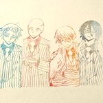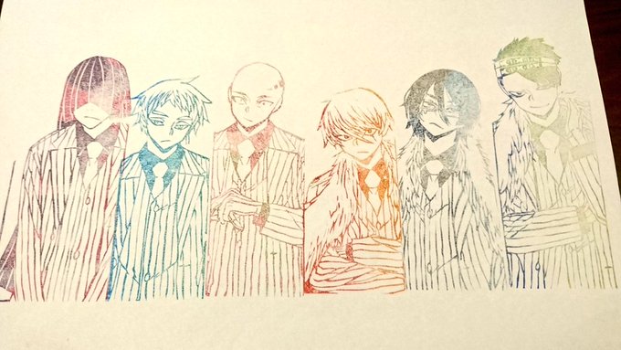 消しゴムはんこ124-129勢揃い! はい、漫画のページみたく6人並べましたよ。 どーですか!?圧巻でしょ!? な…長かった… 拡大して見てください♪ #消しゴムはんこ #桃源暗鬼 #桃源暗鬼ファンアート