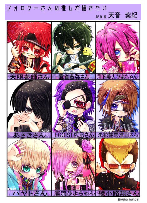 予定より遅れておりましたが以前募集した推し絵が出来上がりました! 普段描かない人やキャラを描くのは反省点もありつつ色々勉強にもなって楽しかったです😊 ご参加下さった皆様ありがとうございます✨ テンプレはおぬの様( @nuno_nunosi)からお借りしました🙇♀️🙇♀️ #フォロワーさんの推しが描きたい