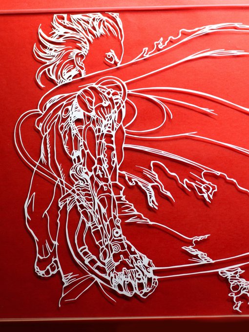 ワンフェスいよいよですね。切り絵は実物の方が綺麗なので(写真を撮るのが下手だからかもしれない)ぜひ見に来てください!お待ちしてます🦎 #WF2023W #dorohedoro twitter.com/shikishima3/st…