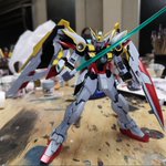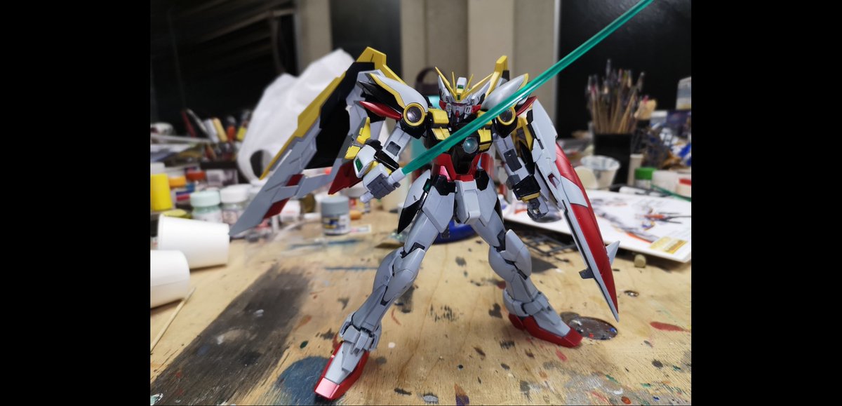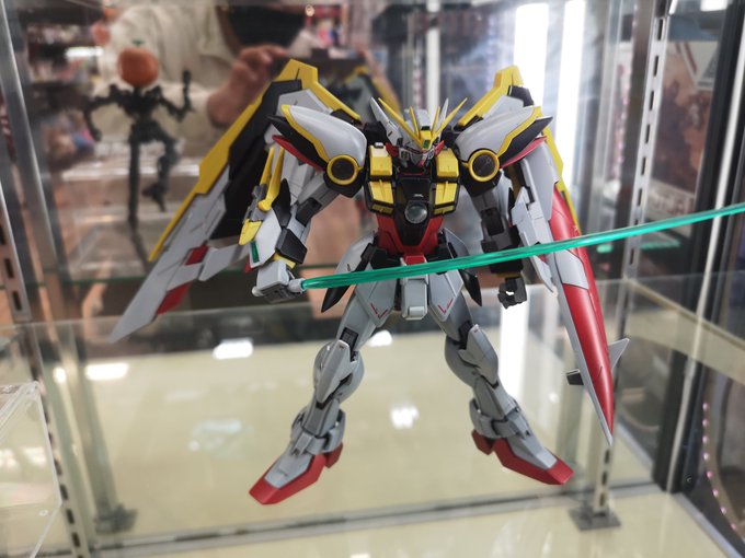 ウイングガンダムEW(リアルタイプカラー風味) せっかく作ったので飾ってもらいました。色々残念な出来ですが生暖かい目で見てください。丸亀のホビーゾーンです。 #ガンプラ #ガンプラ好きと繋がりたい #ガンプラはどんな自由な発想で作ってもいいんだ