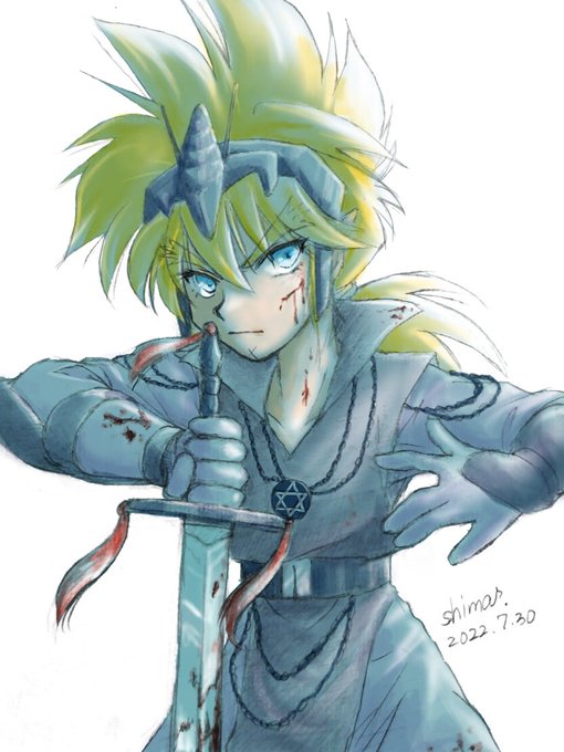 9 31 #見た人も無言で剣を構えた何かをあげる 過去絵、今見るとツッコミ入れたくなる部分多い〜💧 進歩してる証拠かな😅 意外と剣構えてるの描いてない。 あとは棍とかだたw 23/02/05 23:01