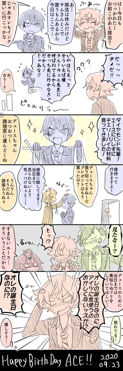 26 103 ハーツ寮+監のゆるいギャグとかBLとか描くの好きです〜カプとても雑多 #ff外で私のこと気になってる人いませんか 20/09/27 21:42