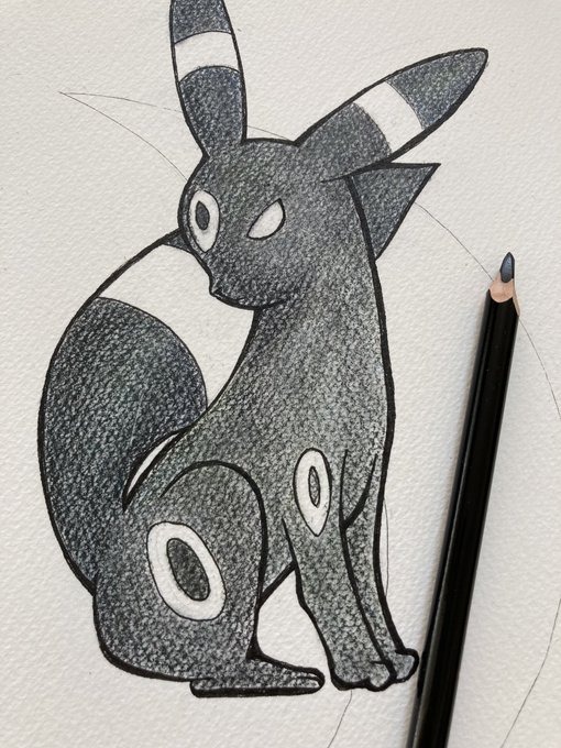 ブラッキー完成♪ 深みのある黒って難しい💦 まだまだ研究です。 #ポケモン #ブラッキー #Umbreon #色鉛筆イラスト #色鉛筆 #絵描きさんと繋がりたい #イラスト好きさんと繋がりたい