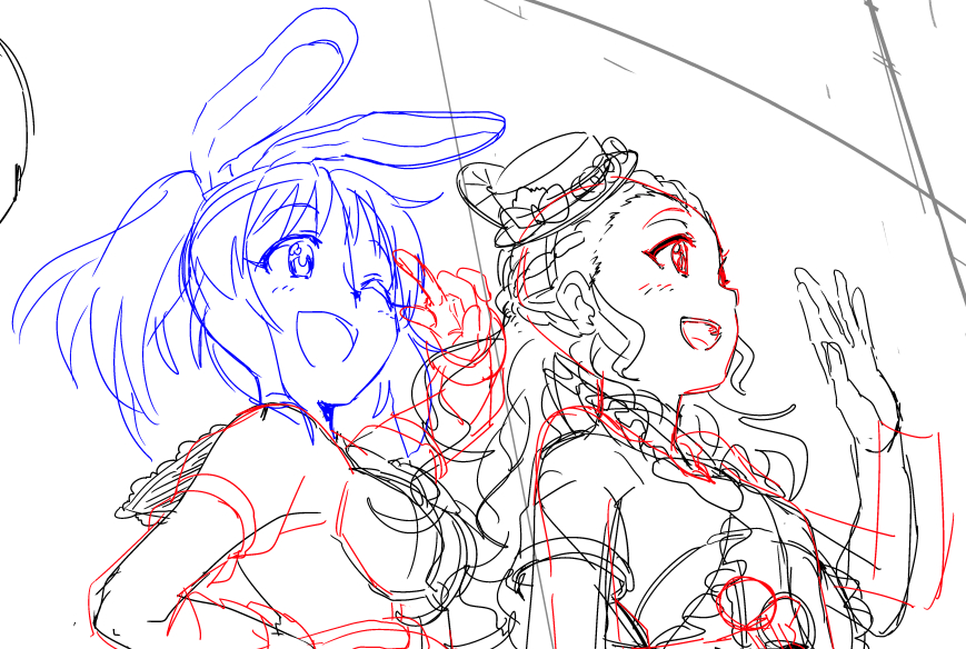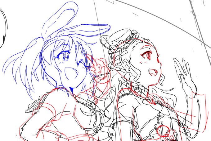 skebイラストの途中。 イイ感じのイラストになりそうで筆が乗ってる。