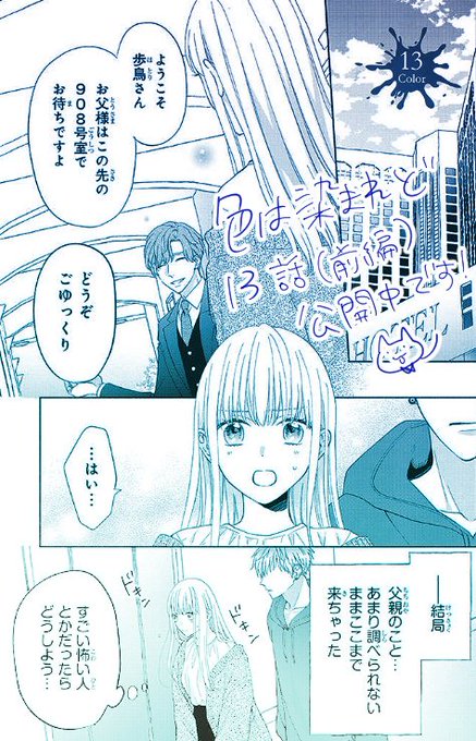 ❄おしらせ❄『色は染まれど』13話前編が公開されました!初めて会う本当の父親を前に歩鳥は……?な回になっております。ぜひ読んでみてください~✨(ついでに月間シルフのイラストも描いているのでチェックよろしくです◎)#いろそま comic.pixiv.net/works/7265