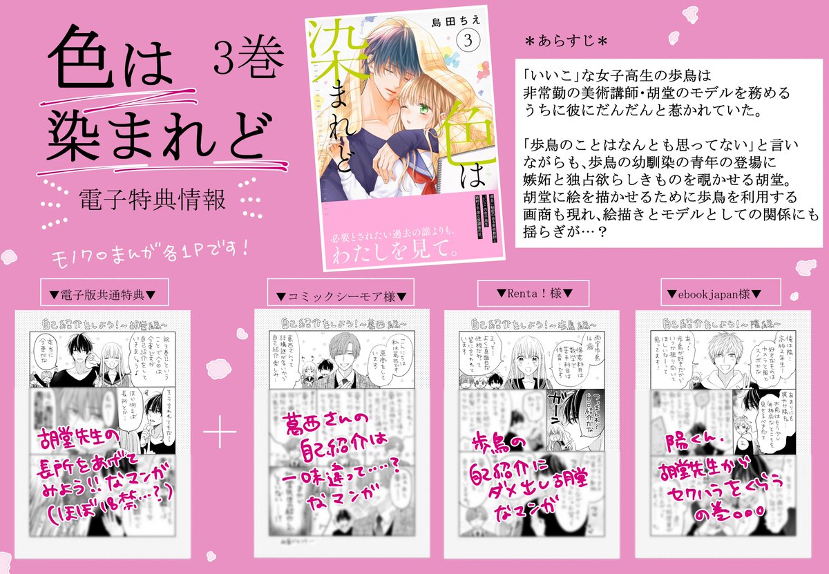 ❄おしらせ❄真面目JK×不真面目美術講師のラブストーリー『色は染まれど』単行本3巻が紙・電子ともに本日発売しました!三角関係が加速したりいちゃついたりと盛りだくさんな内容になっています💕 電子のみおまけ漫画つきです◎ぜひよろしくおねがいいたします~✨#いろそま kadokawa.co.jp/product/322201…