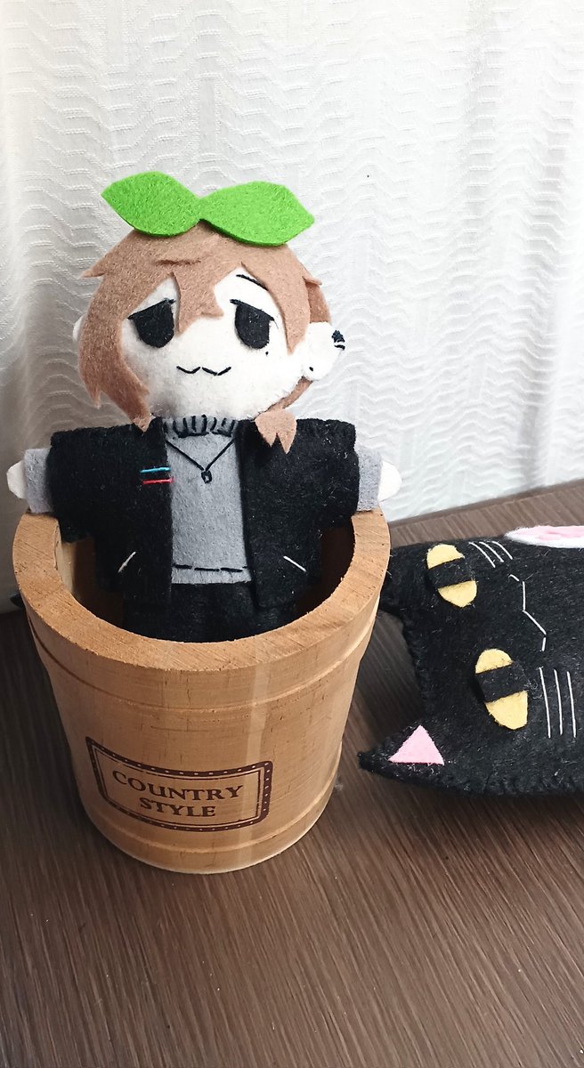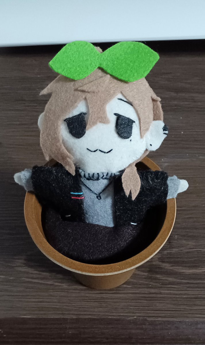 以前作った叶さん(か苗くん)のぬいぐるみ用に、植木鉢の土を作ってみました。 フェルトと丸めた厚紙でできてます。 上向いてひなたぼっこしてるみたいでいいですね… #にじさんじ手芸部 #かな絵 twitter.com/shimadak_ntm…