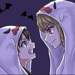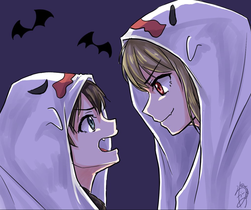 #APHワンドロ版深夜創作60分一本勝負 @Hetalia_1daw 【遅刻組】八重歯帽子兄弟でおばけ 👻ぶるがりゃ驚かし隊👻 🇷🇴「そろそろブノレガリア帰ってくるよ〜!」 🇲🇩「おにちゃんしーっ!なのな!!ブノレガリアおにちゃんにバレちゃうのな!」