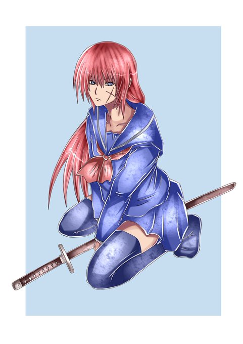 「セーラー服美少女剣心」 セーラー服の似合う28歳男性 ※控えめに言って、腐向けです!ご注意m(__)m 業を背負いし流浪の剣客は、チョベリバな進化を遂げる #イラスト #ネタ絵 #るろうに剣心 #絵描きさんと繋がりたい #絵柄が好みっていう人にフォローされたい