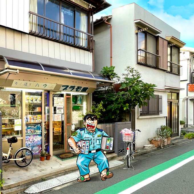 4 34 亀有のプラモ屋に遊びに行ってきた。店内はガンプラとミニ四駆メインで塗料は水性ホビーカラーの取り扱い。 コミックス中期の表紙っぽく描きました。 #こち亀 #亀有 #イラスト #プラモデル 22/08/25 13:58