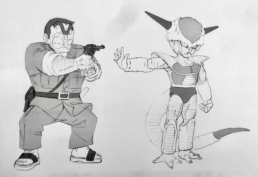 昔、両津勘吉vsフリーザで描いた絵。フィギュア化して欲しかったなぁ〜 #こち亀 #ドラゴンボール #イラスト