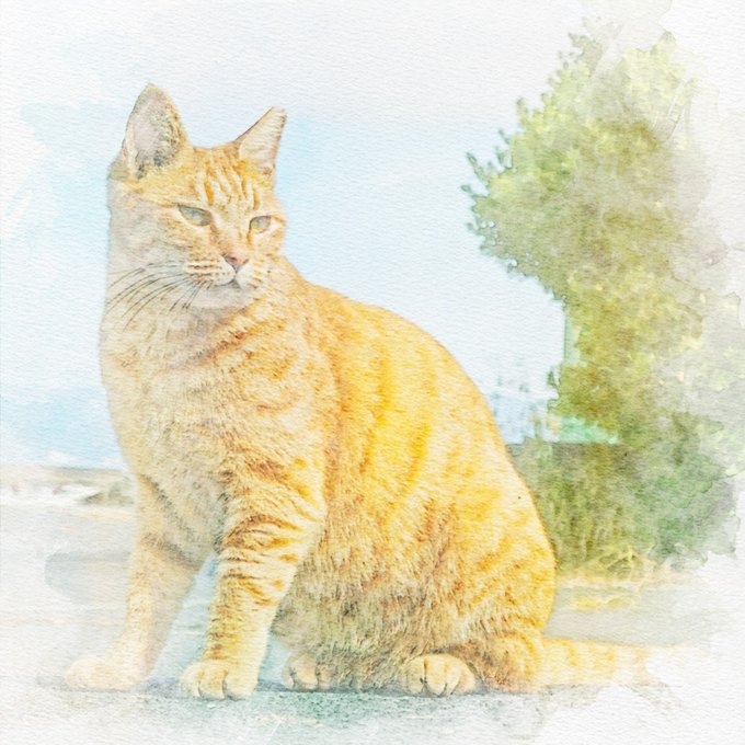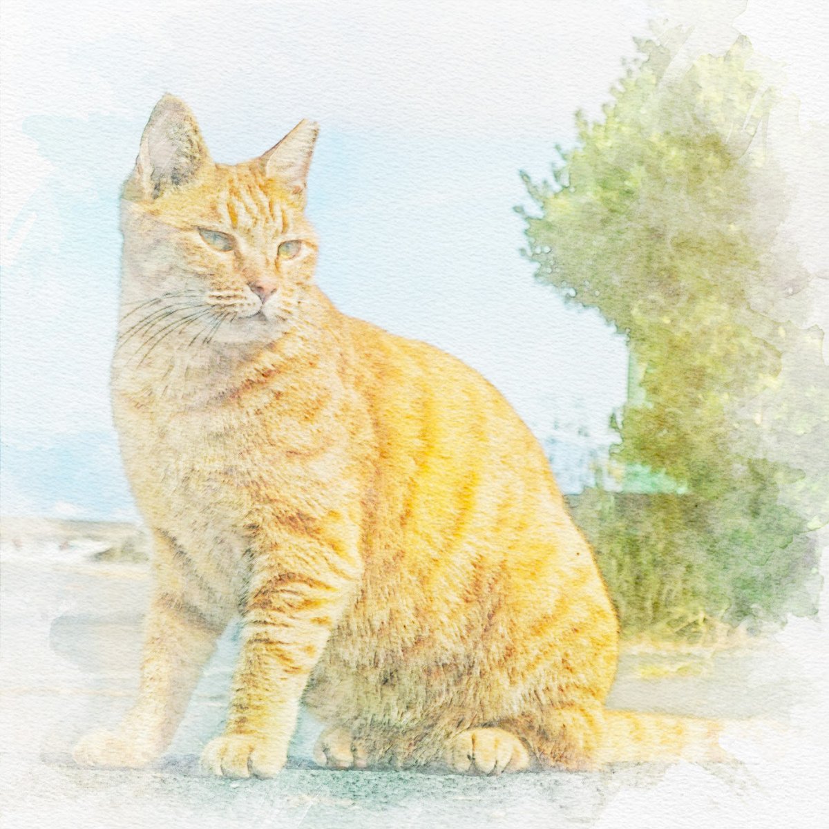 漁港に住む猫の写真を水彩画風に加工してみました。 #野良猫 #猫 #ねこ #水彩画 #港猫