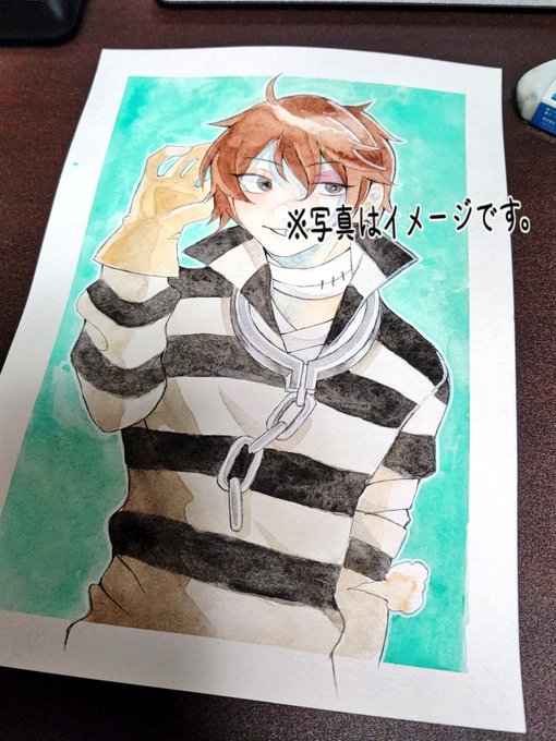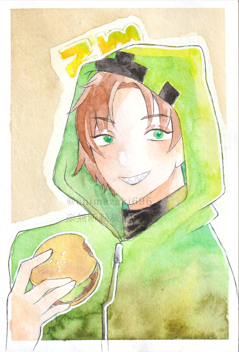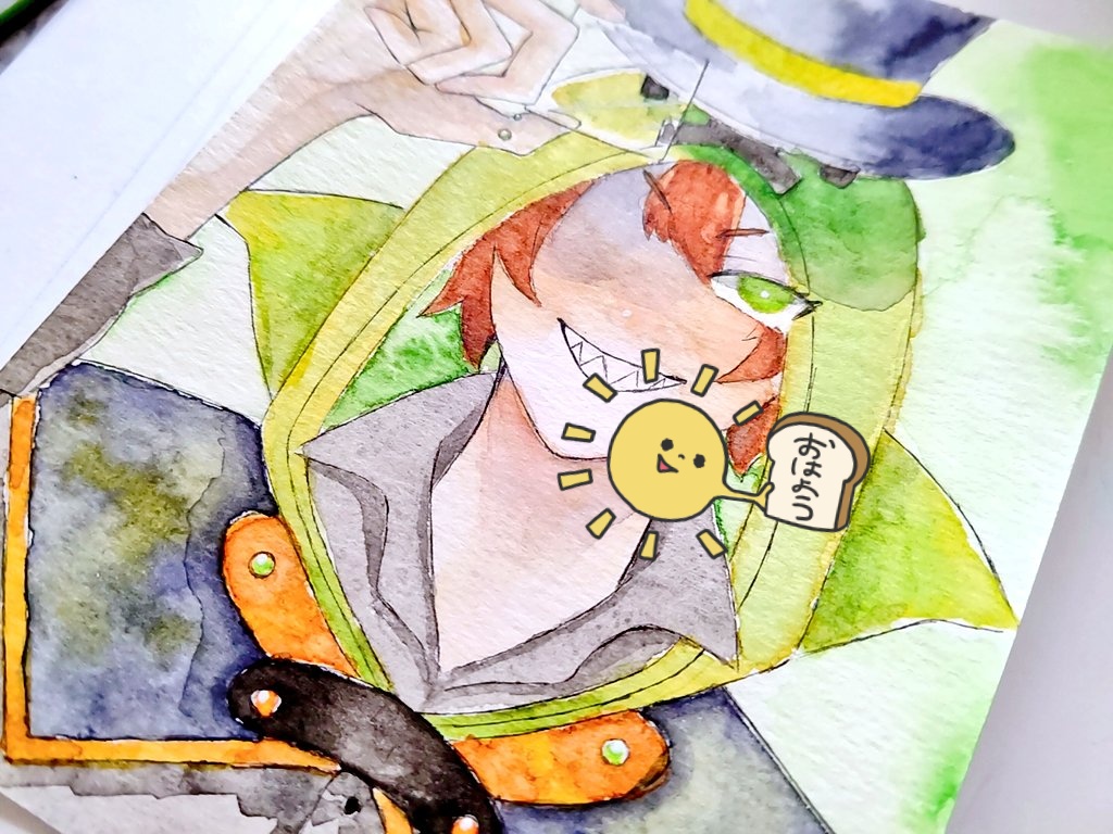 #俺の絵を描いてみて はじめてとしおちゃんのイラスト描いた⊂('ω'⊂ )))Σ≡ 水彩〜🥳