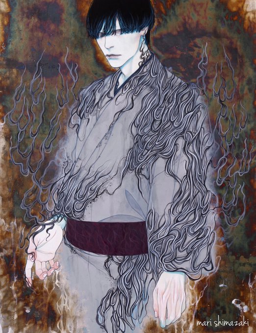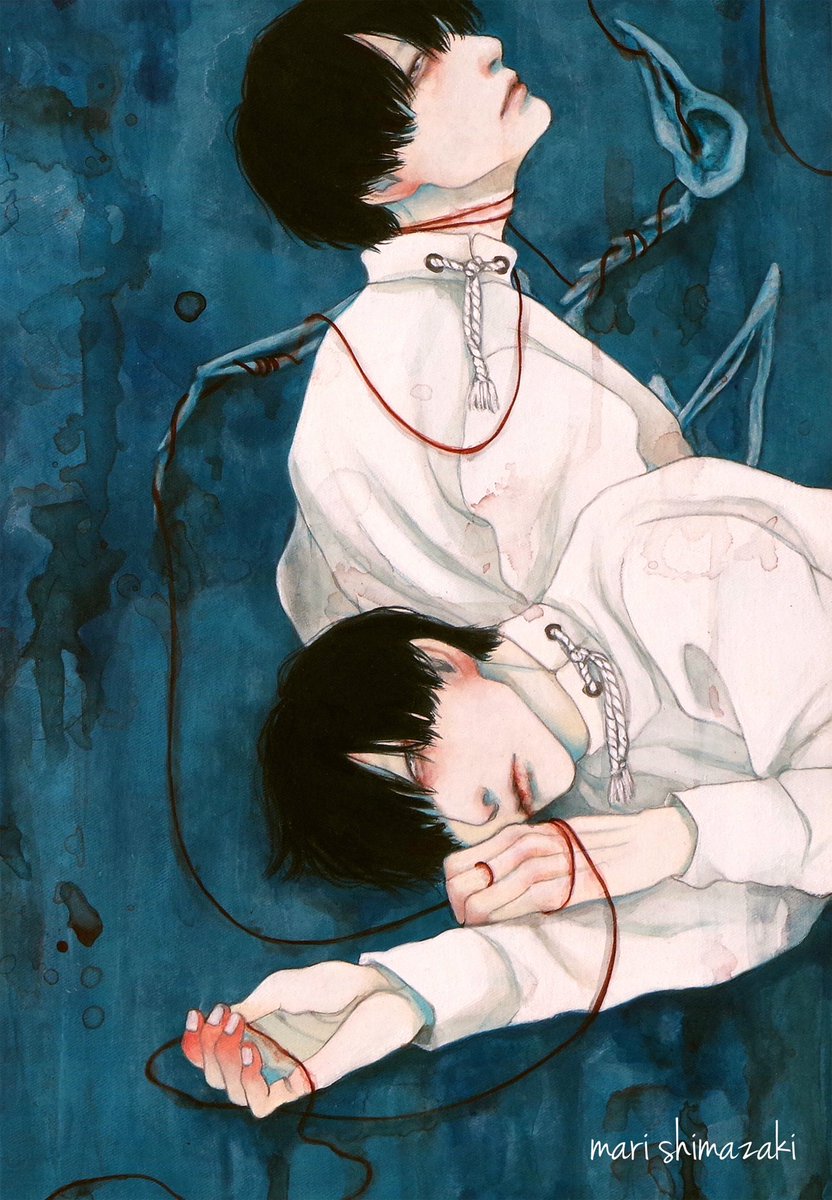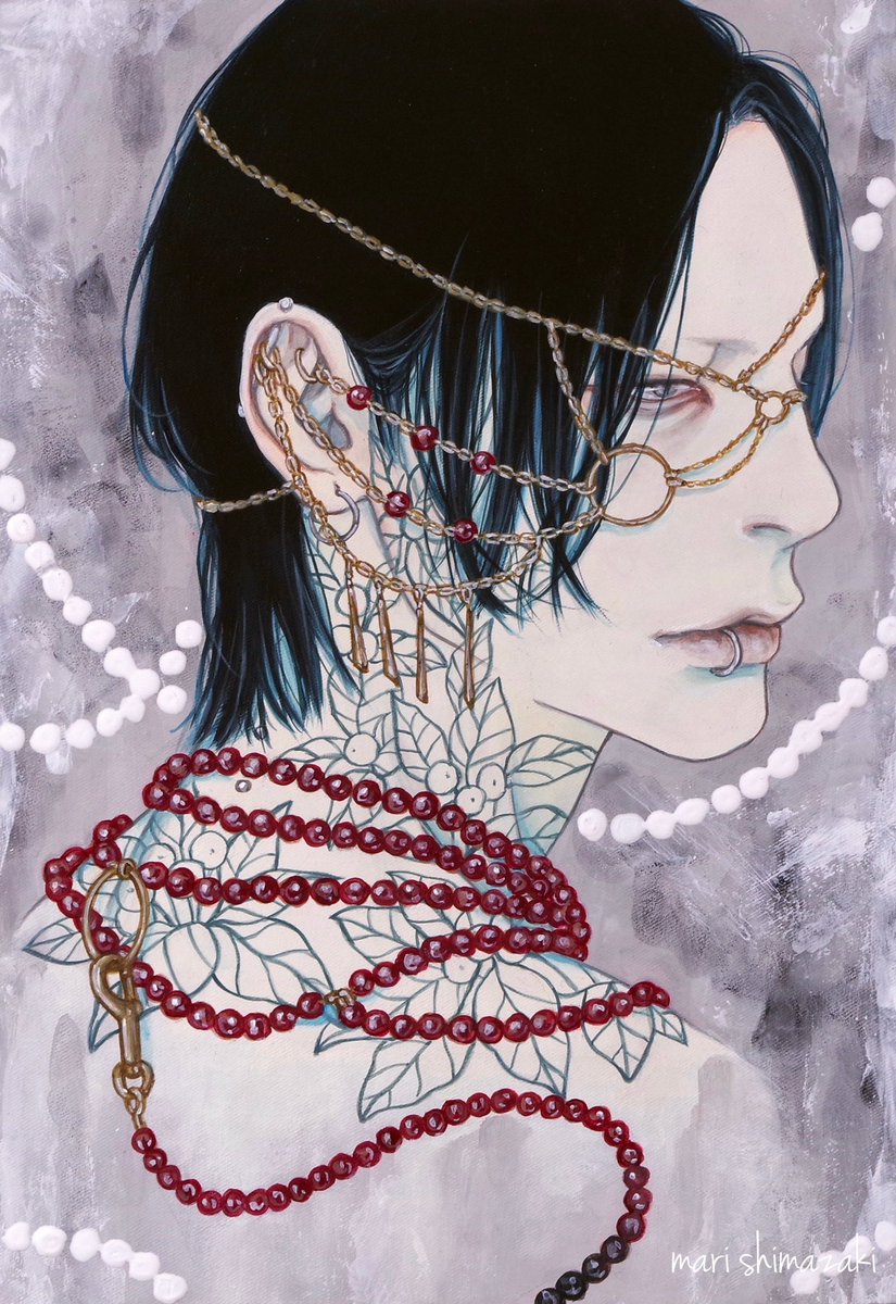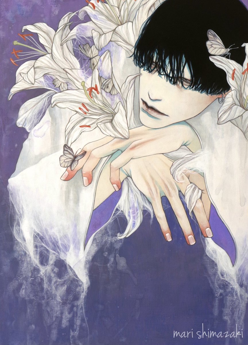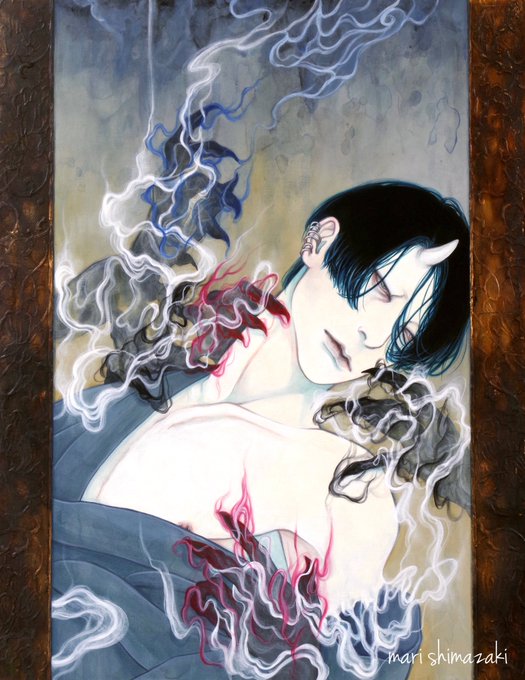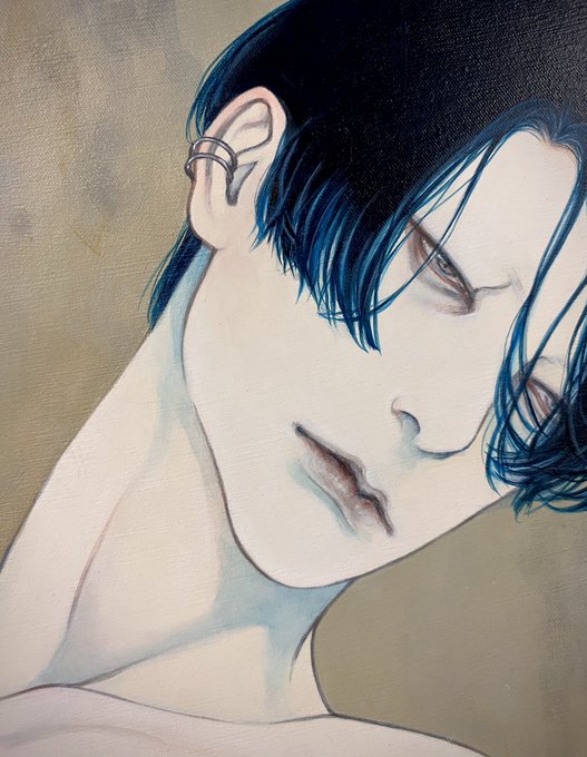 #好きな画像を貼って4人指名していくリレー 遠山涼音さん(@dollballjointed)からご指名頂きました! アクリル絵の具で描いています。 青白い肌と黒髪を描くのが何よりも好き。 現在、個展「彼我の境」開催中です🕯️