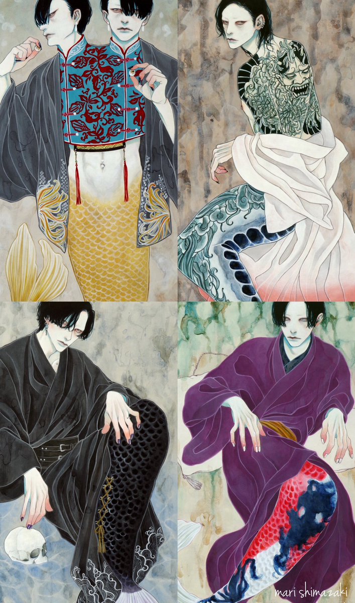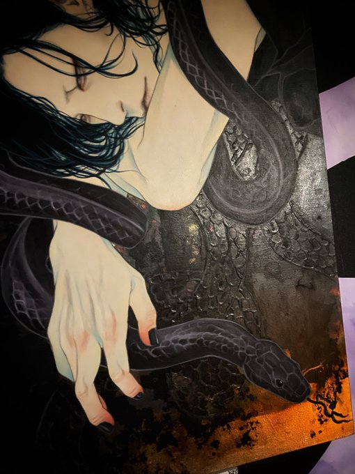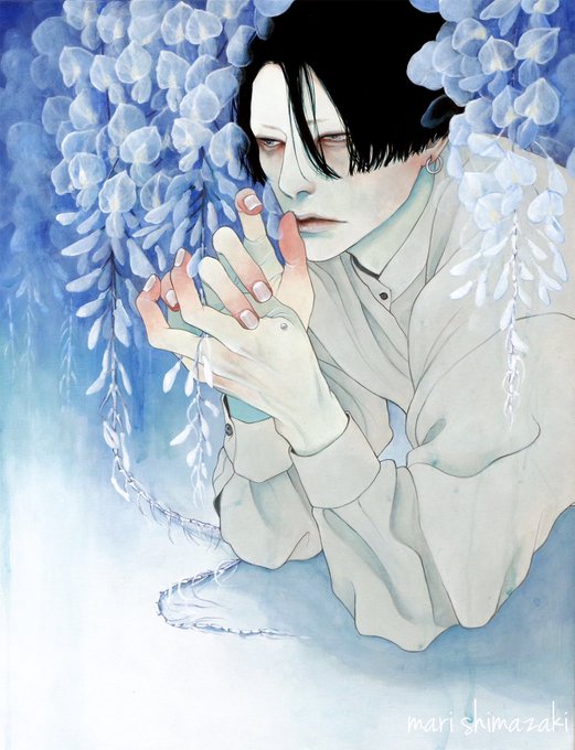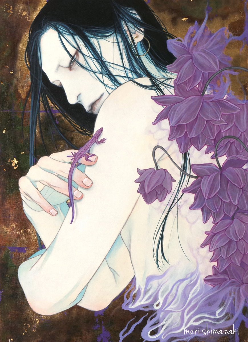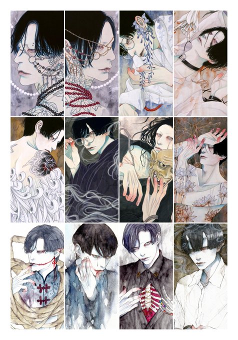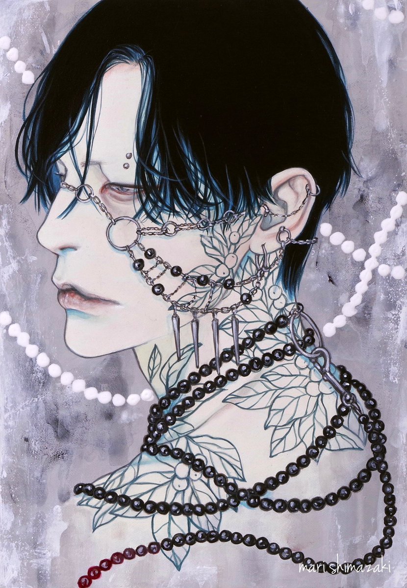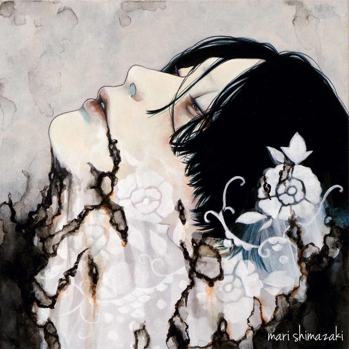 #好きな画像を貼って4人指名していくリレー 遠山涼音さん(@dollballjointed)からご指名頂きました! アクリル絵の具で描いています。 青白い肌と黒髪を描くのが何よりも好き。 現在、個展「彼我の境」開催中です🕯️