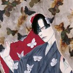 個展「彼我の境」 今日明日は終日在廊いたします💫 gallery cafeBar冥にて5月28日迄 gallerycafebar-mei.com 「うつし世に舞う」 毒蝶に擬態する蝶から着想を得ました。 背景の箔は蝶の形に焼いています。 新作(対のものは除く)の共通のモチーフが炎で、作品のどこかに描いています。