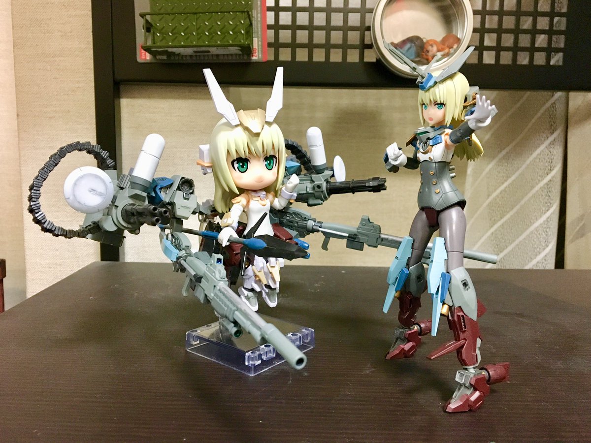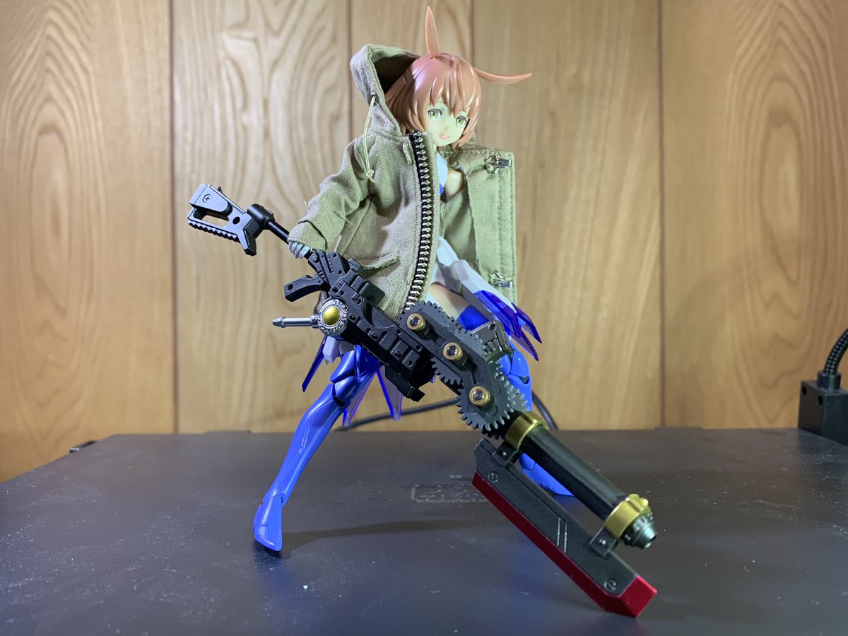 ちゃんとした鶴紗さんも置いときますねー。 ウチの1/12安藤鶴紗とブーケ放送の頃にガンマカで鶴紗モデルのカラーリングにリペイントしたティルフィングです。 砲口をピンバイスとダイヤモンドやすりで彫って穴開けたり微改造してます。 #安藤鶴紗生誕祭2023 #アサルトリリィドール部