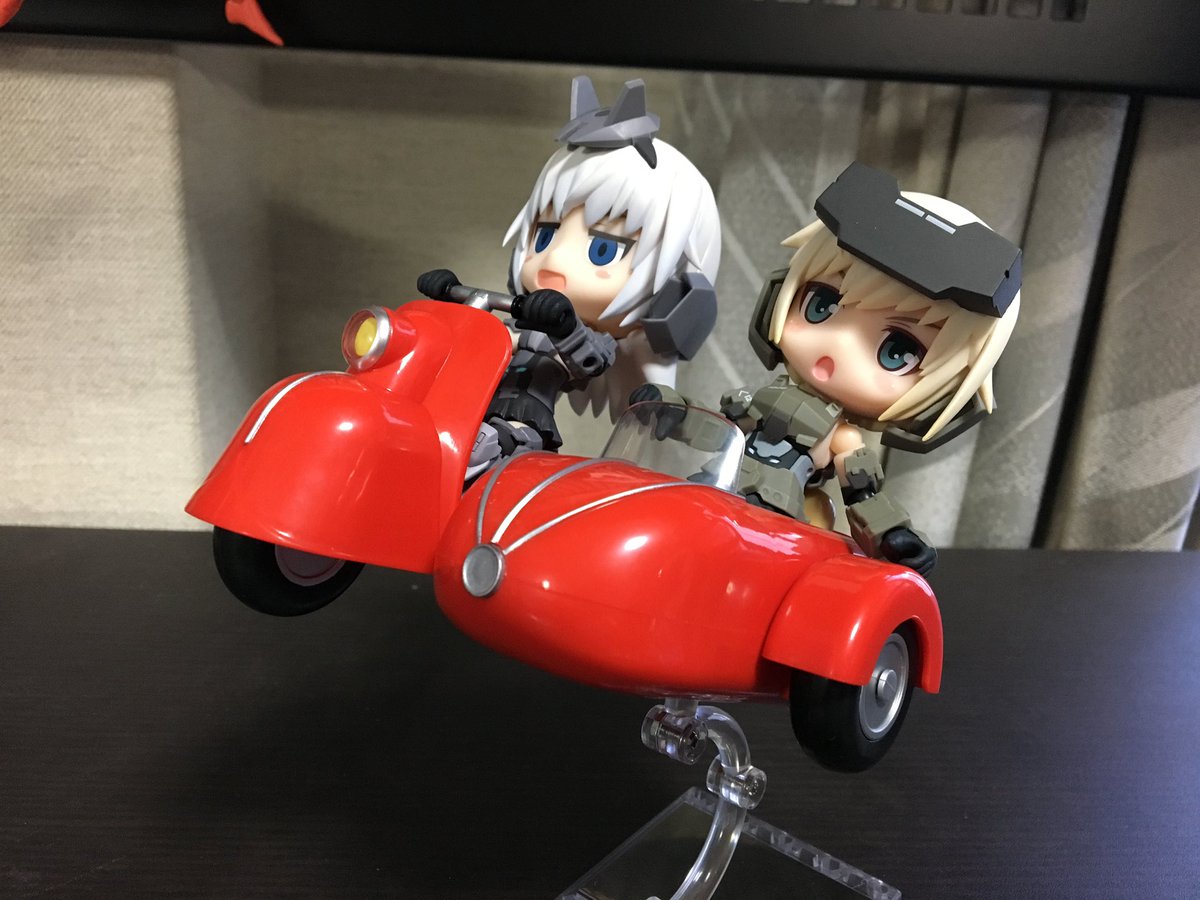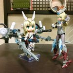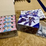 中身DTAのみ15kちょい→11k円への値引きだけどテープで完全密封されてるから中身マジで分からんしどうすっかなぁ…… と思ってたけど買って正解でしたわァ! ボックス丸ごとのDTA朱羅と色違いシタラと非売品シルフィー用カスタムパーツと特典下敷き入ってましたわァ! #デスクトップアーミー