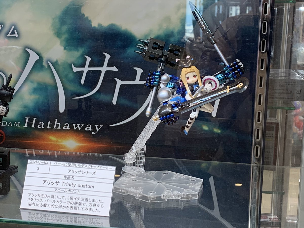 件の改造アリッサ、現在イオンモール徳島の4階にあるホビーゾーンさんのショーケース内に展示させて頂いてます。 同店で開催のDTA限定のコンテストに、アリッサ Trinity custom (三位一体改造)という名前で参加しているので宜しくお願いします! #デスクトップアーミー #DTA