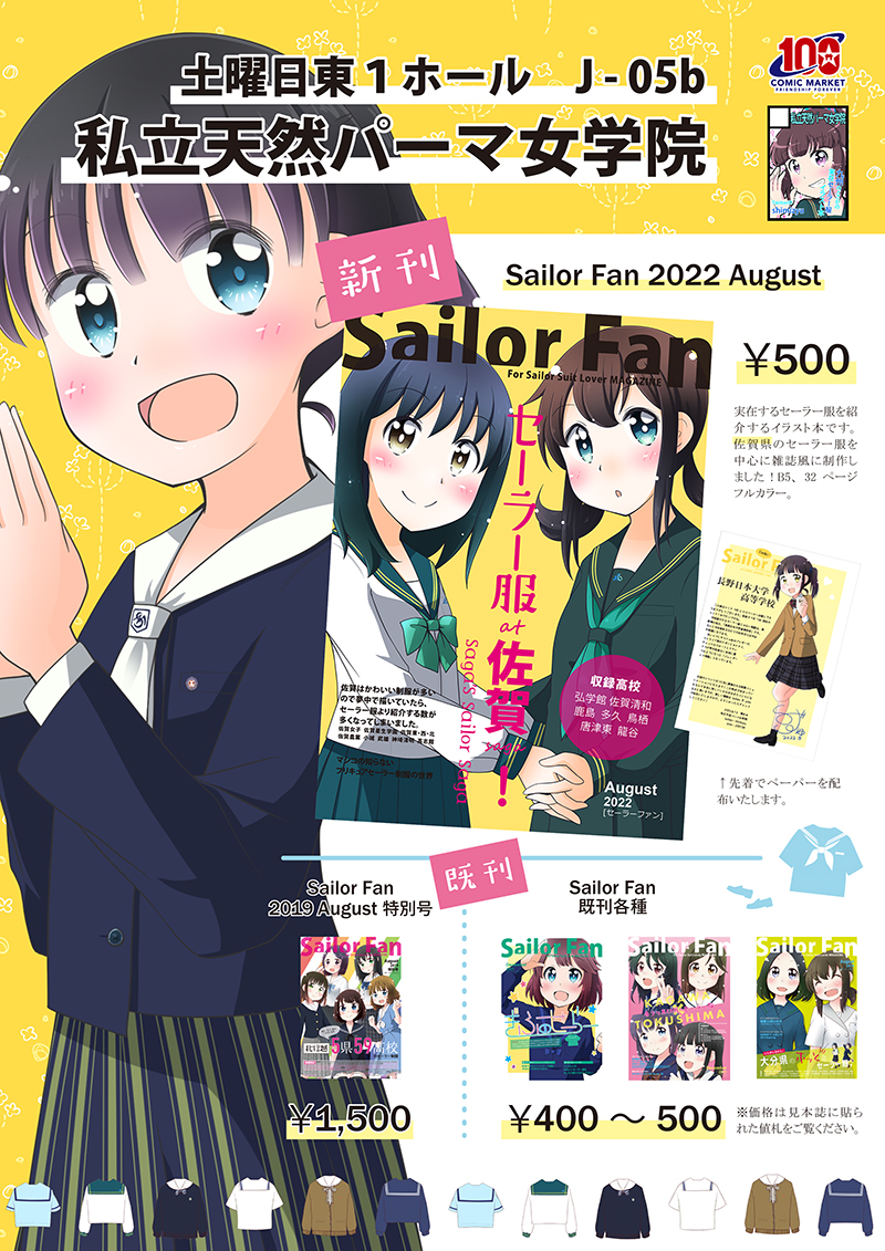 【コミケ100告知!】1日目J-05b『私立天然パーマ女学院』です!佐賀県のセーラー服中心の本になります! BOOTHとメロンブックスさんでも予約始まってますので、よろしくお願いします! 【メロンブックス】 melonbooks.co.jp/circle/index.p… 【BOOTH】 shimizyu.booth.pm #実在制服 #セーラー服 #c100