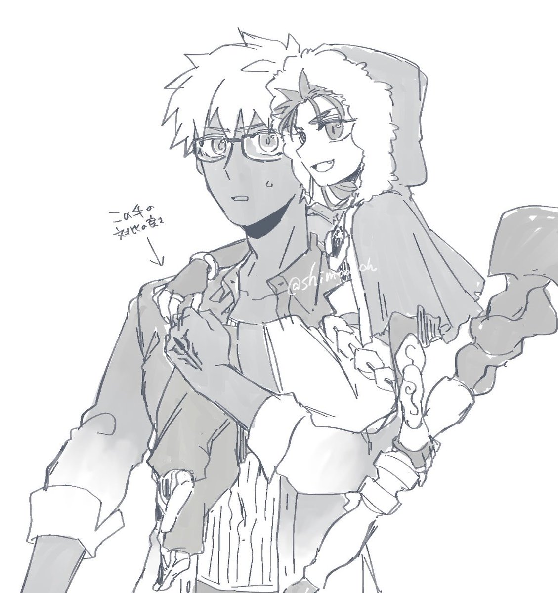 槍→弓←術なキャス弓とおこ槍くんのらくがき
